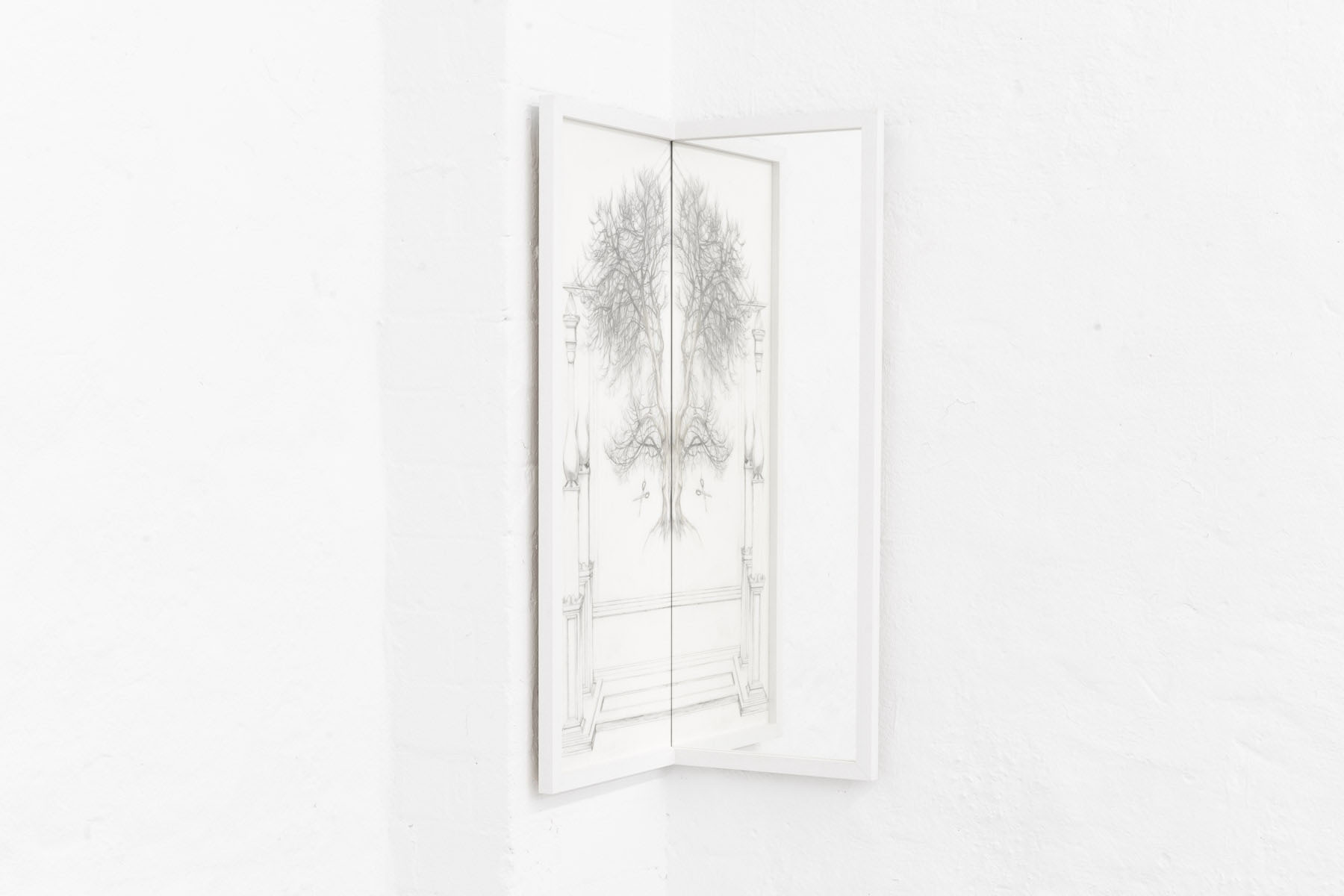 Set Phosphenes explores spaces and objects, which linger in between reality and the assumptions about it, in the subjective distortion that accompanies this phenomenon in the context of memory. The exhibited works range from bricolage-like installations, in which interior and exterior architecture are merged, to images that examine the forgotten and archaic, refusing to be assigned to